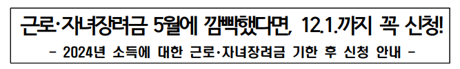 2024년 소득에 대한 근로·자녀장려금을 아직 신청하지 않은 약 24만 가구에게