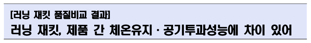 한국소비자원이 공개한 8개 주요 브랜드 러닝 재킷 품질비교 결과를 바탕으로,
