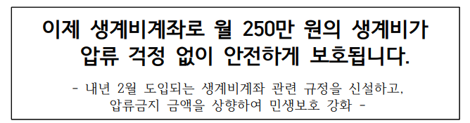 2026년 2월부터 압류금지 생계비계좌 제도가 시행됩니다.